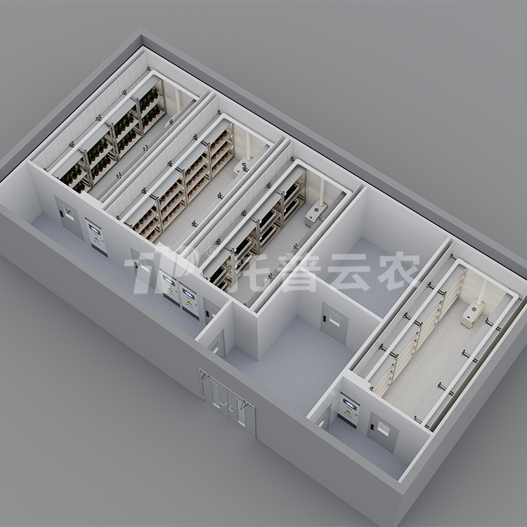 1、環境控制系統:集成保溫潔凈系統、溫恒濕系統、新風系統、滅菌系統、精準氣流組織系統,結合工業級傳感網絡及智能控制系統實時監測并調節溫度、濕度、CO₂濃度、風速等參數,確保環境參數穩定匹配作物生長需求。